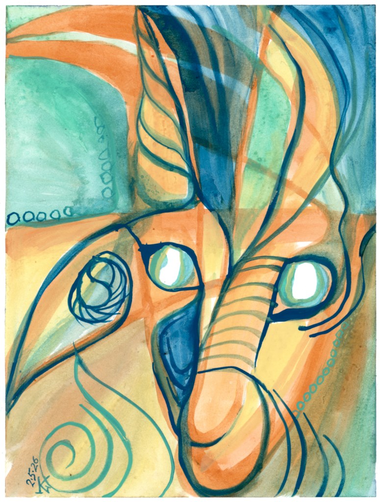 I’ve had a stretch when I really haven’t felt inspired to make these drawings. So I sit at my work table and find a way to break the blank space of the page, and spend at least just a little time filling it with lines and colors. Is it worthwhile? I really don’t know. But it does feel like I am at least using something like a language for my experience of being an alive human, even if all I’m saying is a brief expletive or a frustrated bleat.