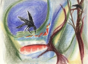 1. It reminds me of a crow who I saw pick up a coin when I was a little girl. It would pick it up in its mouth and turn it around and let it back out. I was pretty young, maybe 7 or 8 up at a farm we used to vacation at in Canada. My dad was there…good good memory. Thank you for your beautiful work, Kate, and especially for sharing it.