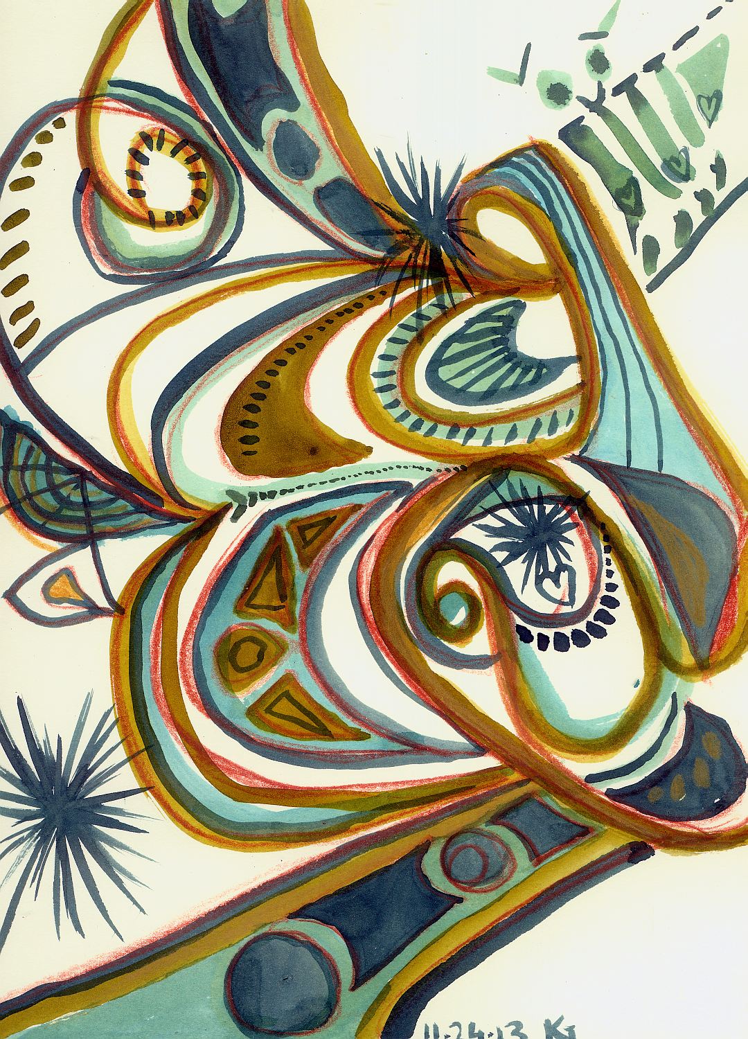 What an absolute delight! I can see why it would leave an impression on a child’s mind. I love the blue and gold look, and the flowing curves that have their own strange perspective.