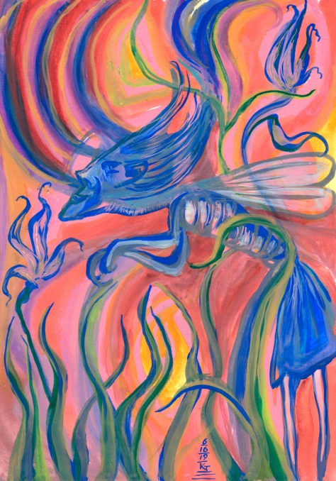 According to my friend on Ello @dabi, this may be a shimmerling… “An individual shimmerling looks like a 4-inch tall elf with dragonfly wings. Its skin and hair are the same color as the glow it gives off, which can be any color of the rainbow. A shimmerling weighs 1 ounce