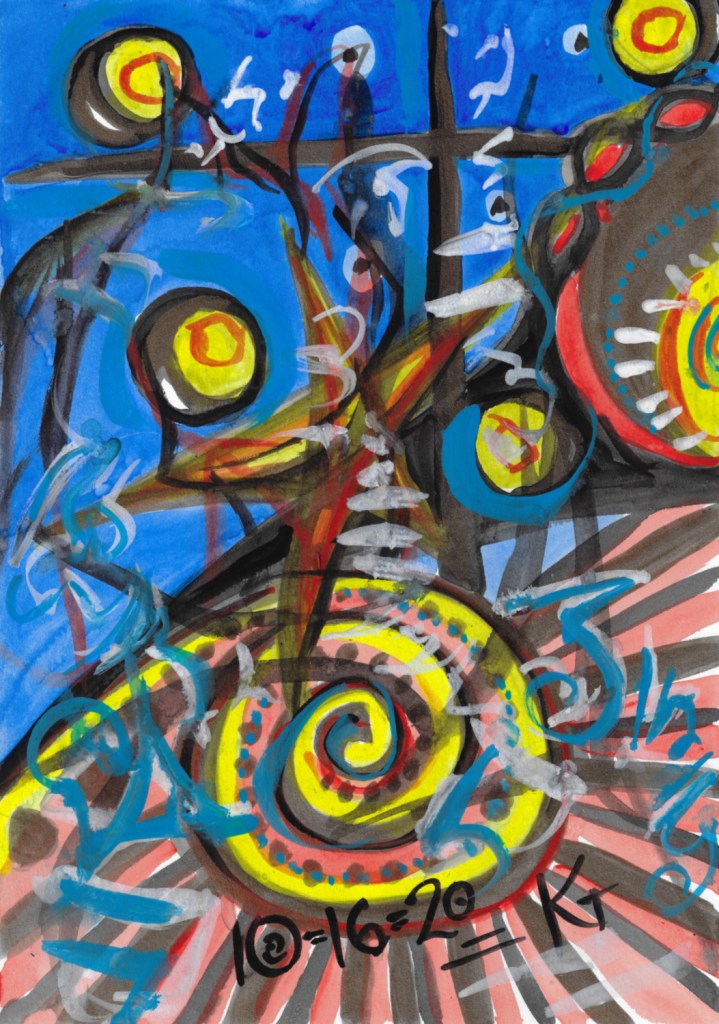 acrylic, daily drawing, Original Art Available 16 October 2020 October 17, 2020 eyespider 2 Comments I got a fever, and am trying not to infect anyone else while I wait for results of a covid-19 test. Here’s some chaotic sigil magic for quarantimes. Share this: Share on Facebook (Opens in new window) Facebook Share on Bluesky (Opens in new window) Bluesky Email a link to a friend (Opens in new window) Email Like Loading... Related