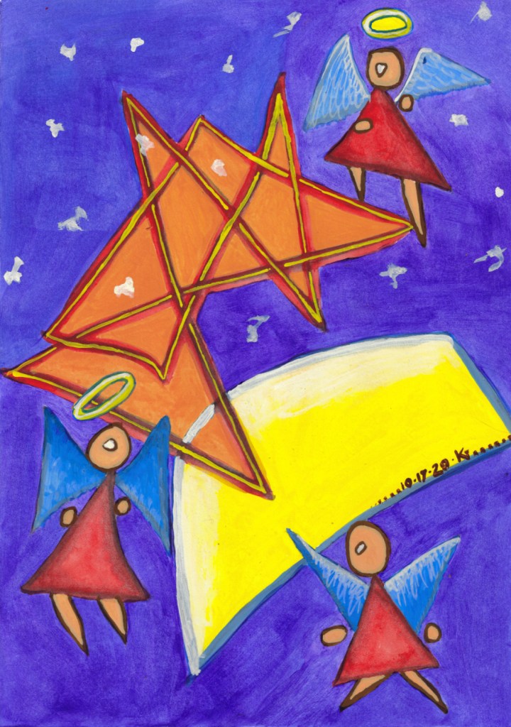 acrylic, daily drawing, Original Art Available 17 October 2020 October 17, 2020 eyespider Leave a comment I’m still under the weather, feeling a need for protection and cheering. Also our old dog Jack is on the decline. And I’m binge-watching The Good Place. Need any more reasons for little angels? Share this: Share on Facebook (Opens in new window) Facebook Share on Bluesky (Opens in new window) Bluesky Email a link to a friend (Opens in new window) Email Like Loading... Related