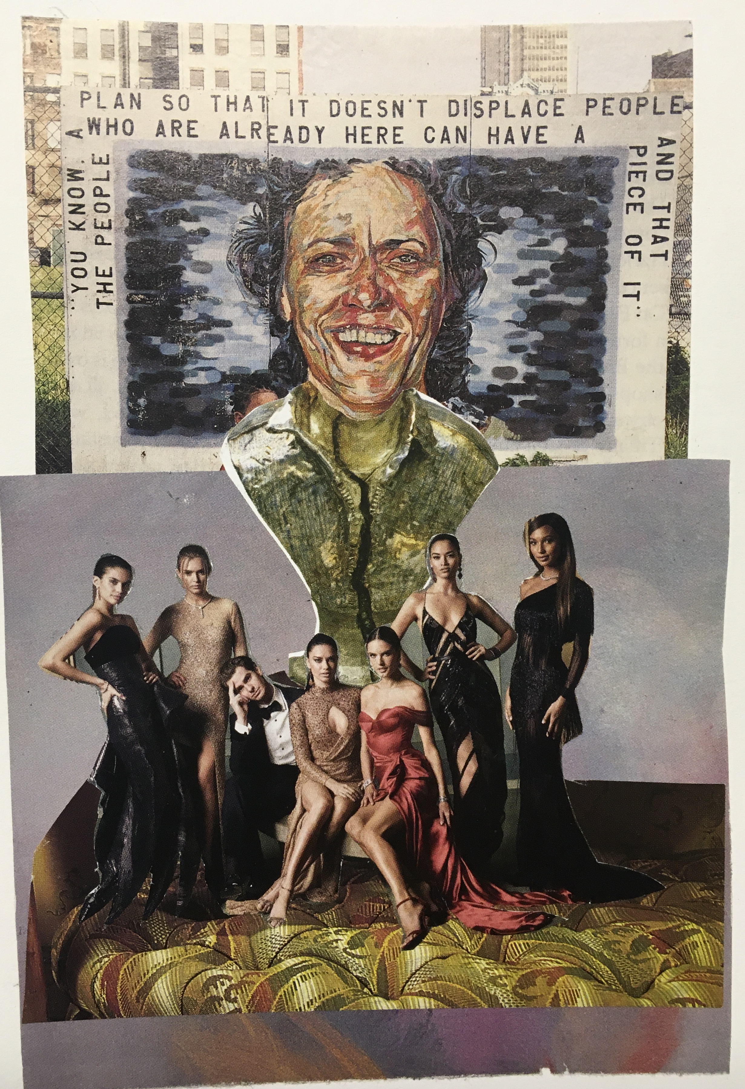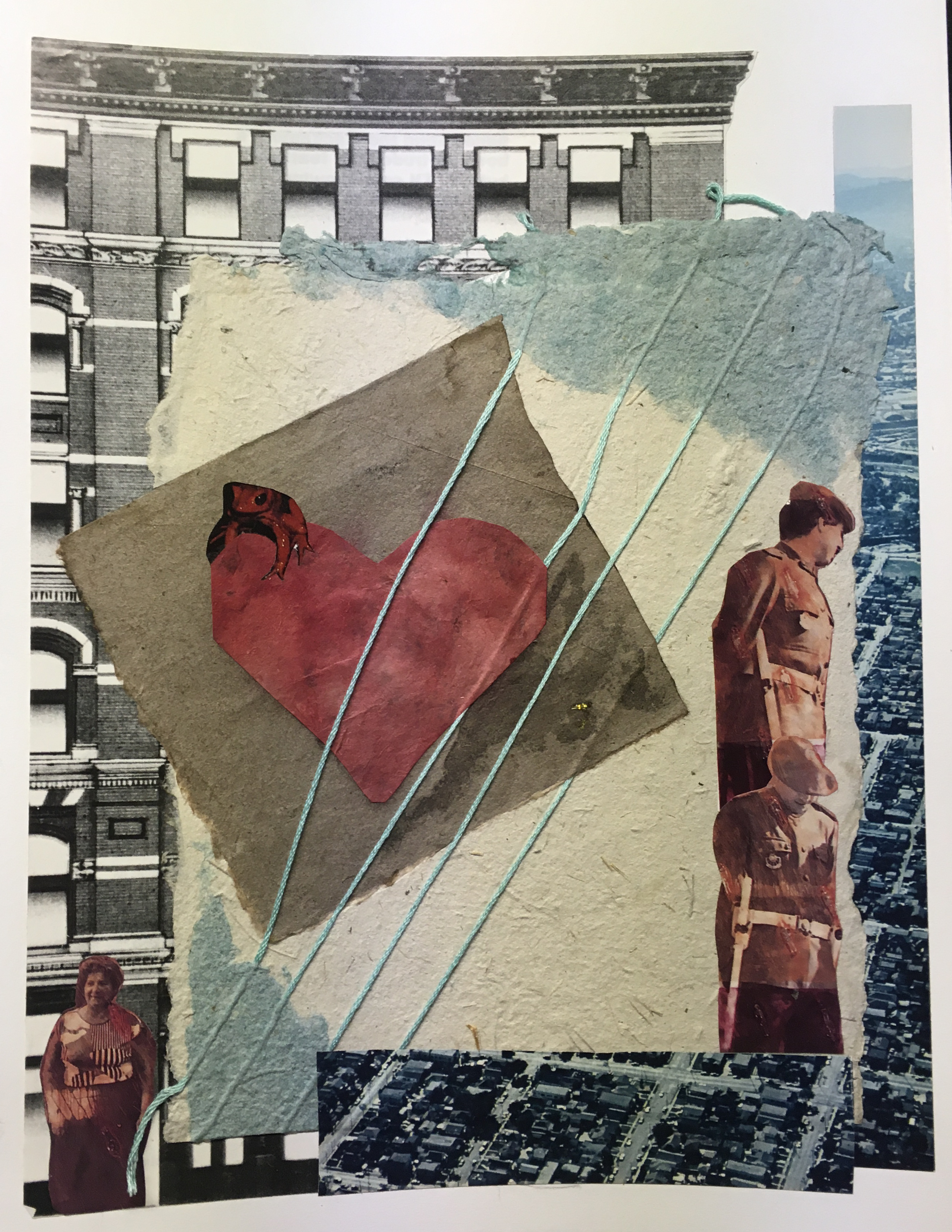 The two above are on 9″ x 12″ paper. I love how collage can engage playful intuition. I work on several at the same time, and think that I’m just responding to line and color, but then often find that they have drawn forth a little story or vignette.