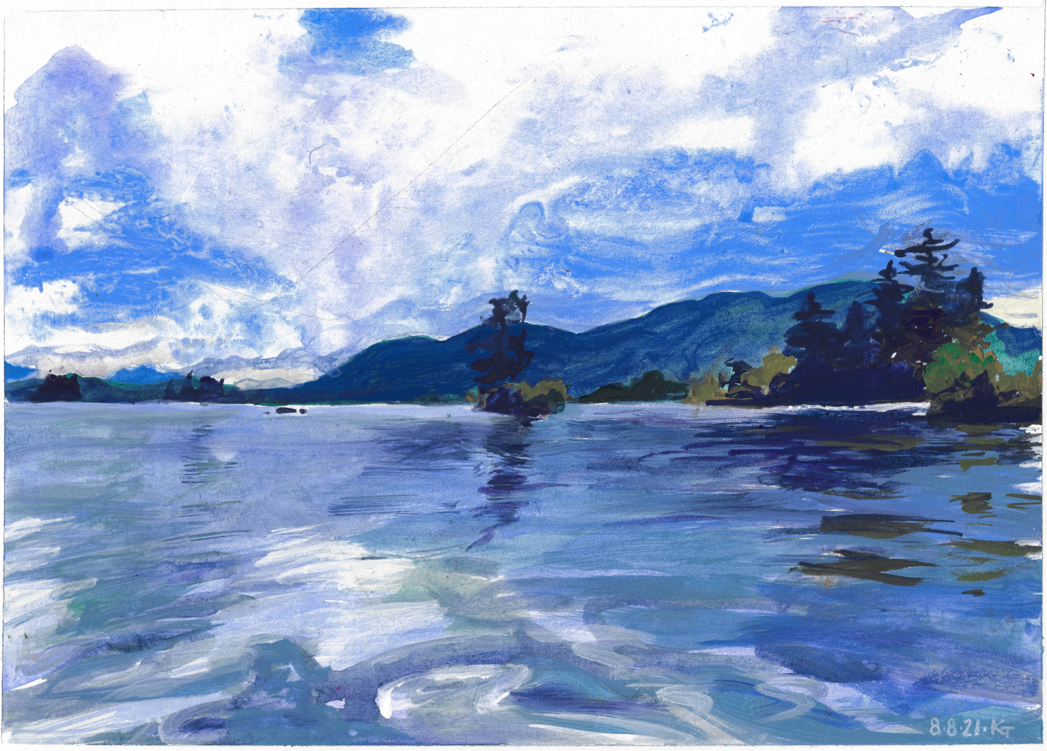 acrylic, daily drawing, Original Art Available 8 August 2021 August 9, 2021 eyespider 2 Comments Back at the lake in my mind. Please excuse the pencil line in the sky. Share this: Share on Facebook (Opens in new window) Facebook Share on Bluesky (Opens in new window) Bluesky Email a link to a friend (Opens in new window) Email Like Loading... Related