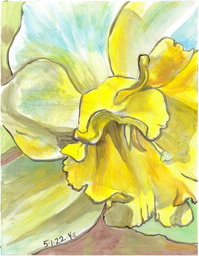 acrylic, daily drawing, Original Art Available 1 May 2022 May 2, 2022 eyespider 2 Comments This is to make it up to yesterday’s poor wounded 4-petaled daffodils, which made it clear how often I don’t use references for my daily art! Share this: Share on Facebook (Opens in new window) Facebook Share on Bluesky (Opens in new window) Bluesky Email a link to a friend (Opens in new window) Email Like Loading... Related
