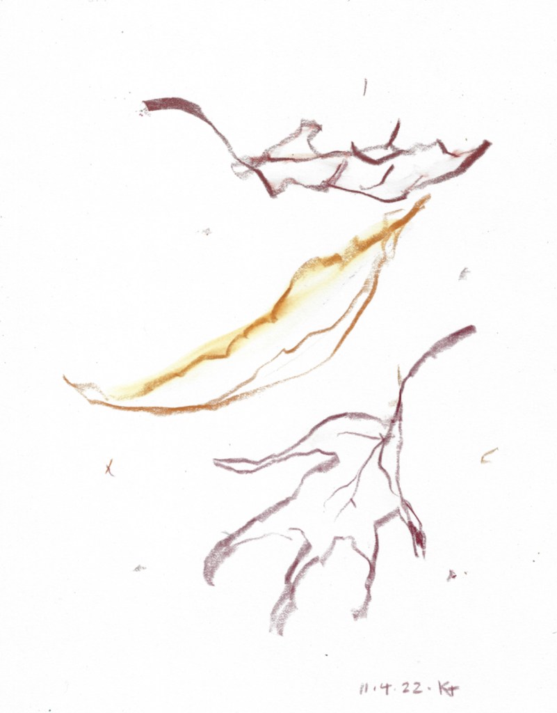 spent a lot of time in the woods today. It’s unusually mild for November, but the leaves are mostly fallen, making a crispy carpet underfoot. The moon a fat gibbous, bright with just wispy clouds.