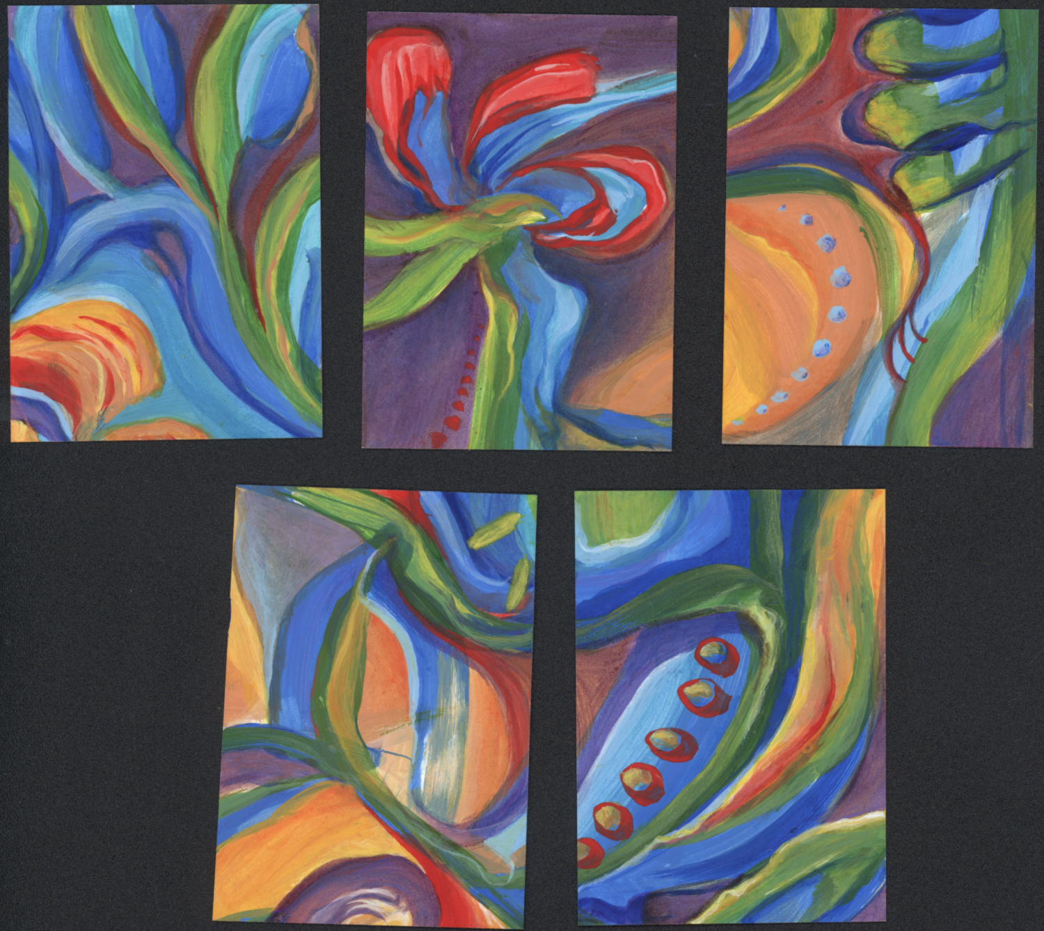 1. What a great idea, taking a larger painting and turning it into 5 ATC! I used to do ATC but doing them individually takes a LOoooong time if you’re something of a perfectionist. I stopped making them for that reason.