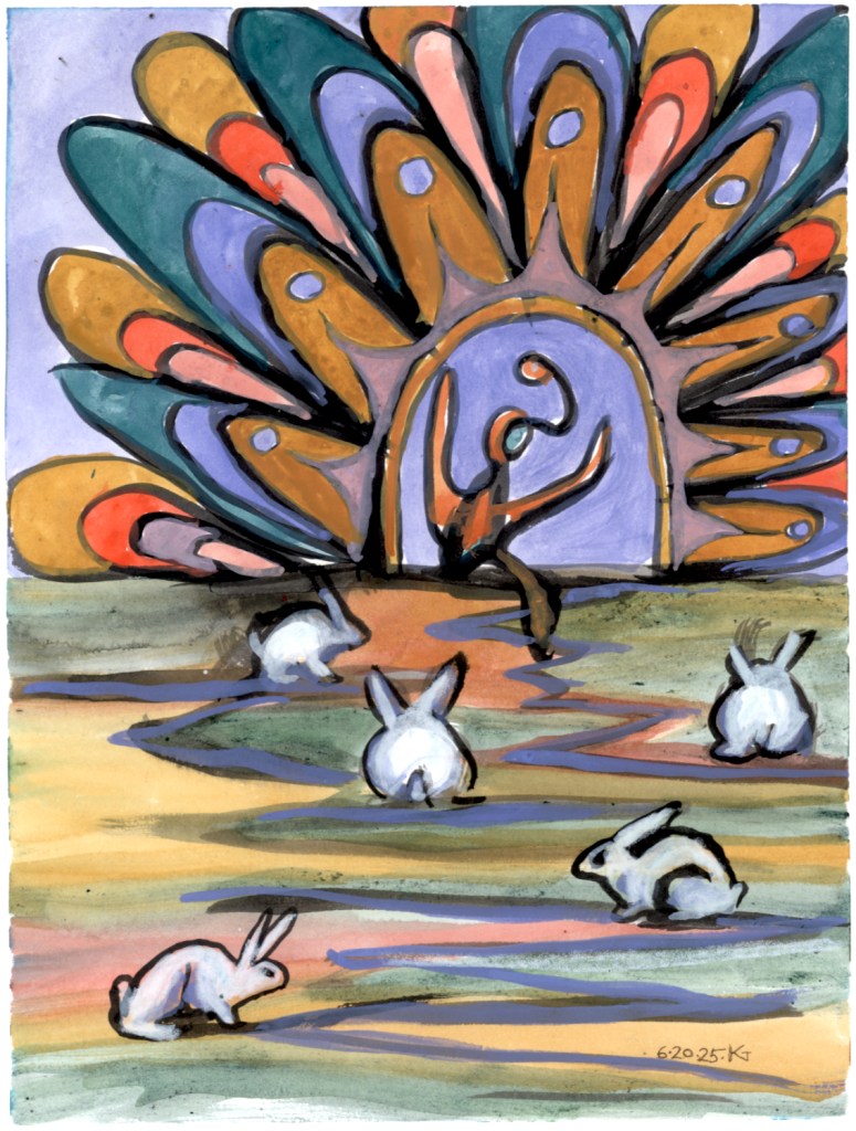 crayon/pencil, daily drawing, ink, Original Art Available 20 June 2025 June 21, 2025 eyespider Leave a comment portal to the rabbitat ALT: ink and crayon drawing. Some kind of being with arms upraised is stepping through a flamboyantly decorated arch, onto a field where five white rabbits sit and vaguely pay attention. Share this: Click to share on Facebook (Opens in new window) Facebook Click to share on Bluesky (Opens in new window) Bluesky Click to email a link to a friend (Opens in new window) Email Like Loading... Related