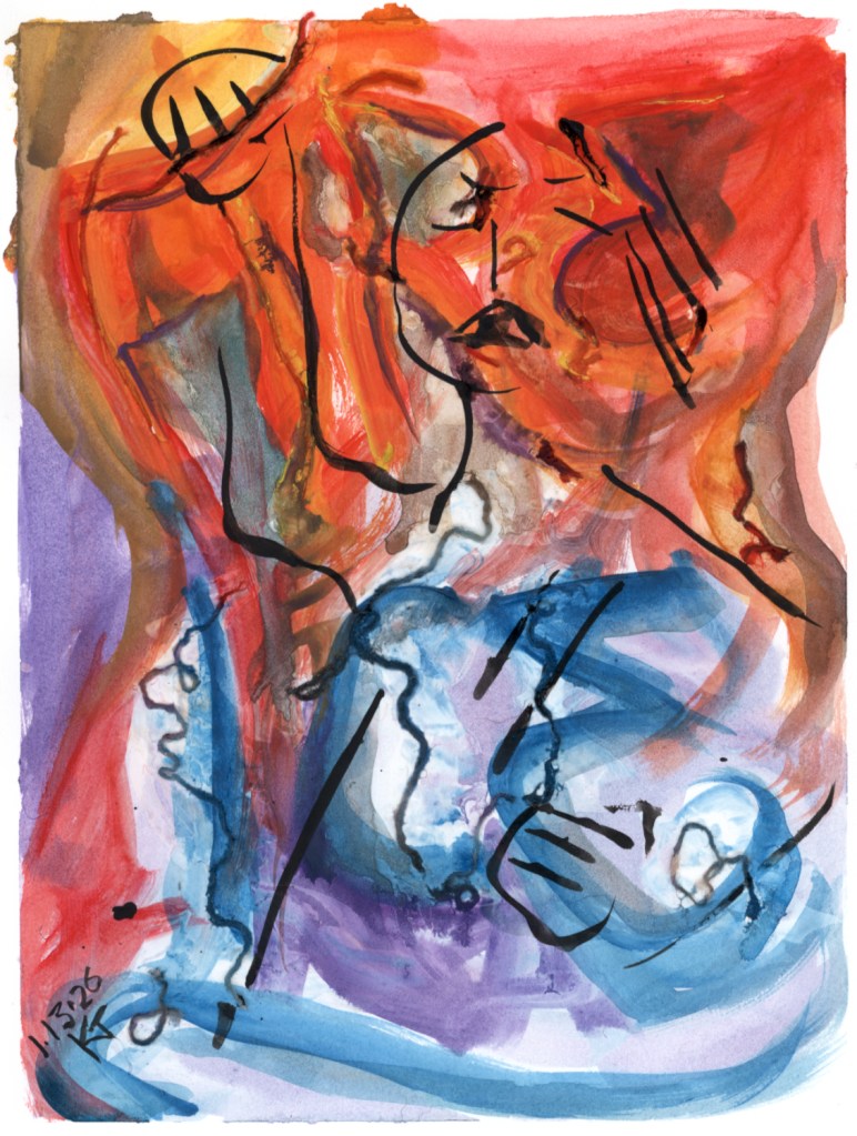 acrylic, crayon/pencil, daily drawing, ink, Original Art Available 13 January 2026 January 14, 2026 eyespider Leave a comment fire ice ALT: water-soluble crayon, acrylic paint, ink. it says “FIRE” in red and “ICE” in blue, and there’s an ink sketch of someone superimposed on the words, with their fist upraised. Share this: Click to share on Facebook (Opens in new window) Facebook Click to share on Bluesky (Opens in new window) Bluesky Click to email a link to a friend (Opens in new window) Email Like Loading... Related