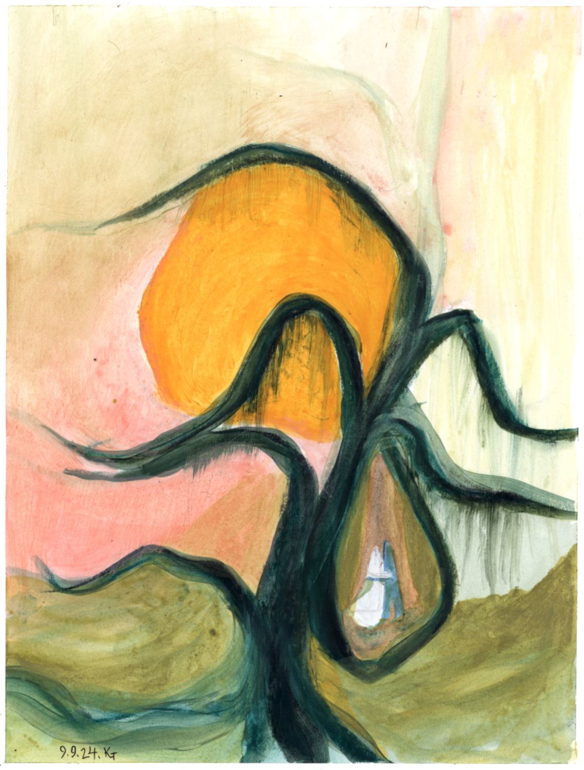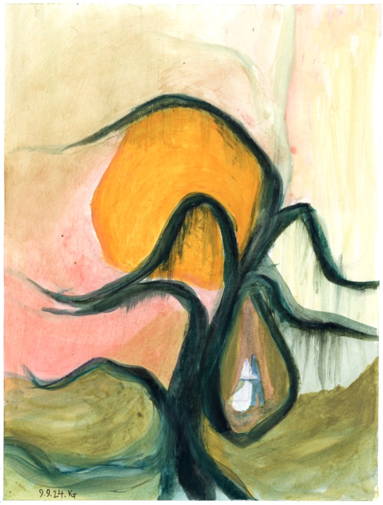 In my studio, and not in my late summer garden, playing with wax and watered-down acrylic paint