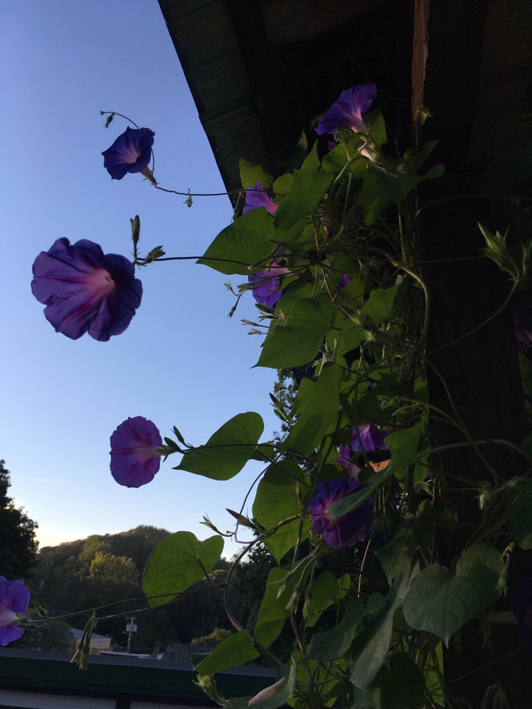 Here’s a photo of the morning glories climbing my porch.