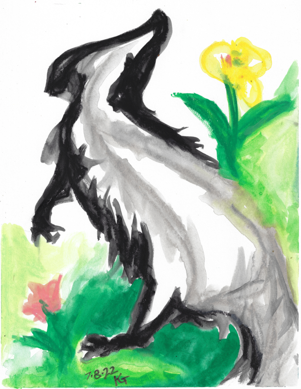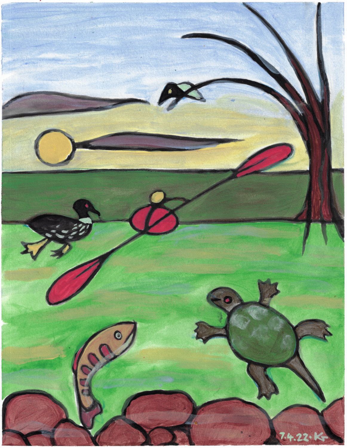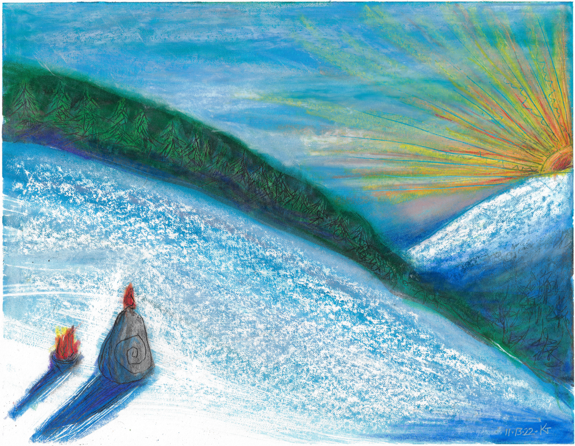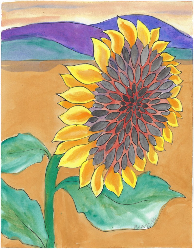 Below is the painting as I originally posted it. I always have the urge to tidy up “looseness”; I’m not sure that’s always best. In this case though, I like the colors in the finished image better, and it more nearly matches my intent.