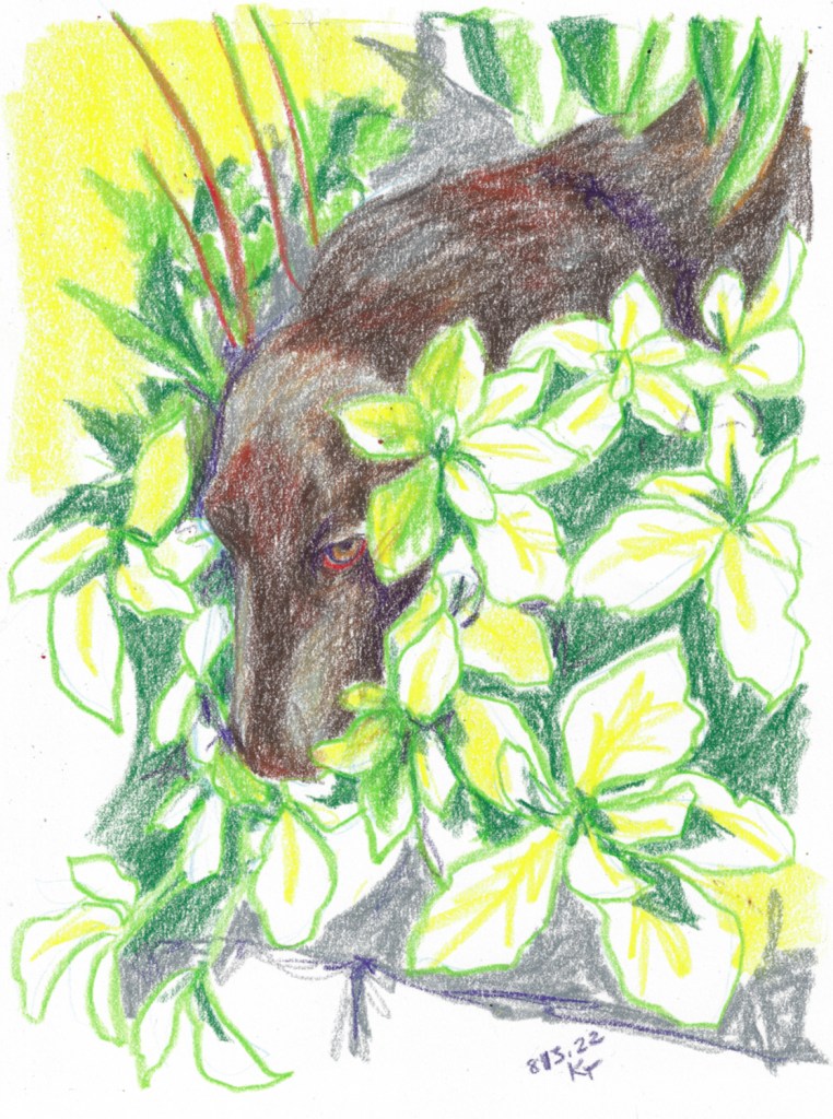 On my way across to my studio I saw the local skunk, who made a nominal effort at hiding under the truck. I don’t suppose we’ll ever be friends, but maybe at least neighbors who wave hello?