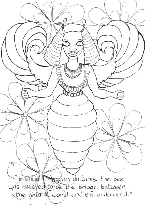 I had enough time in studio to play with some new tools – I actually broke out my lightboard to trace the original sketch I made, which was not properly centered for such a symmetrical being. And a new pen nib for the finer lines.