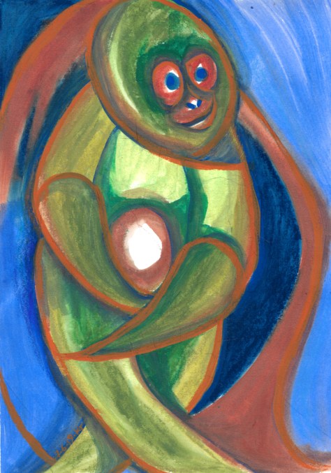 just for the record, here’s what my worktable looks like, with closeup of the monkey in question.